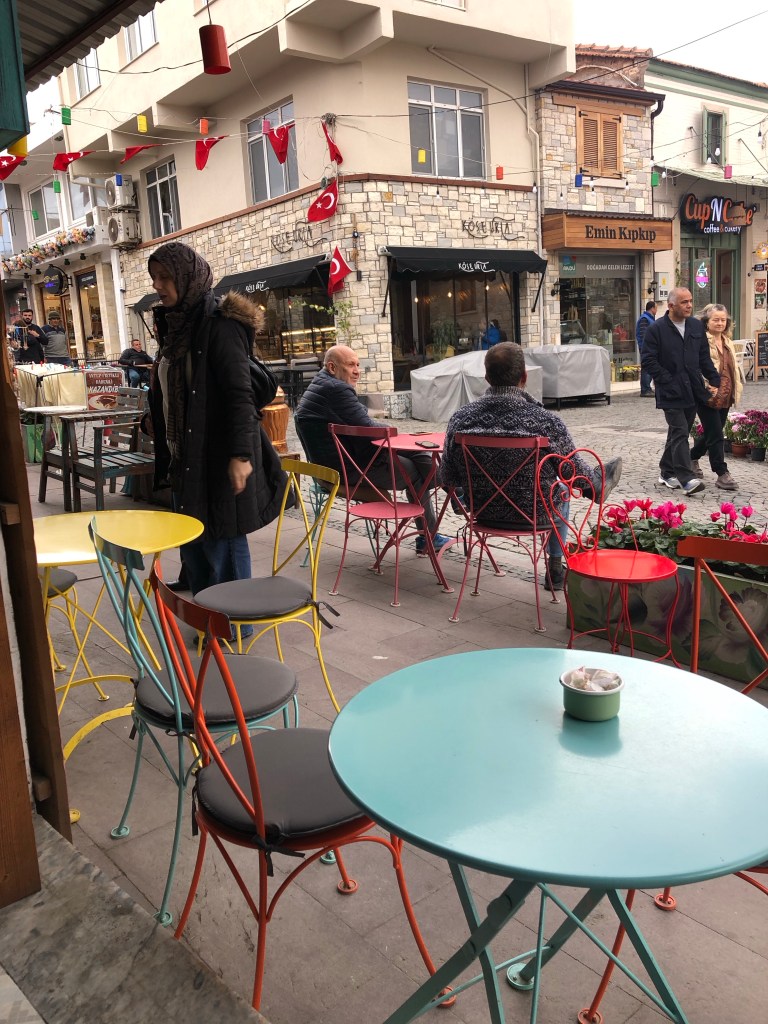 Urla merkezdeki sanat sokağına girmeden Bizbize Aile Çay Evinde çay,kumda kahve, çeşitli yöresel gazozların tadına bakarak dinlenirken , nostaljik havayı soluyabilirsiniz.